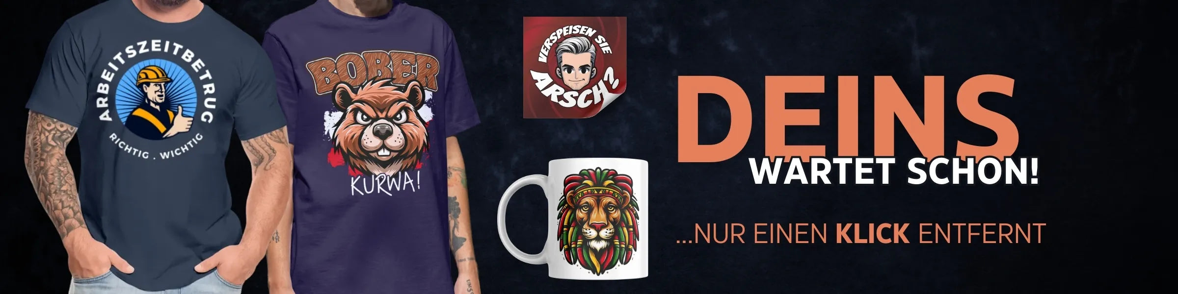 Sticker, Shirts, Beutel, Tassen & mehr.